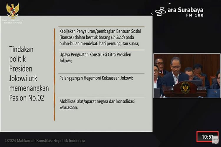 TIMES Singaraja/Ketua KPU RI Hasyim Asy'ari dalam sidang lanjutan PHPU di Mahkamah Konstitusi, Jakarta. (FOTO: Tangkapan Layar)