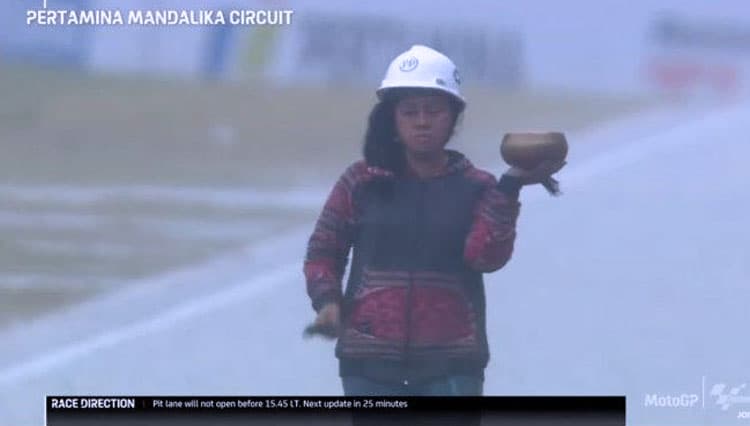 LOMBOK TENGAH – Kemunculan Raden Rara Isti Wulandari, sang pawang hujan saat Sirkuit Mandalika,