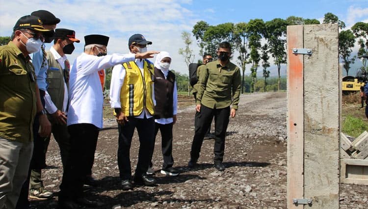 TIMES Singaraja/Sekjen PUPR RI Mohammad Zainal Fatah dampingi Wapres RI KH Ma'ruf Amin meninjau lokasi pembangunan Hunian Sementara (Huntara) bagi korban terdampak erupsi Gunung Semeru di Desa Sumbermujur, Kecamatan Candipuro, Kabupaten Lumajang.